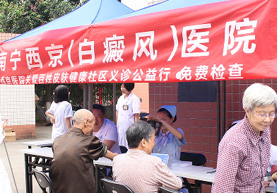 南宁西京白癜风医院以肖海靖主任为首的白癜风医疗团下基层社区义诊。本次义诊活动旨在让百姓不要谈"白"色变,为居民灌输全面系统、科学权威的白癜风疾病常识,积极呼吁大家正确对待白癜风,拒绝冷漠与歧视。鼓励白癜风患者及早就医,科学治疗,尽早摆脱疾病困扰。